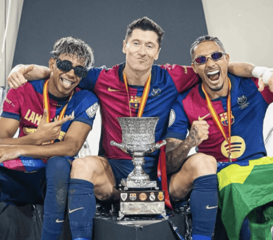 而在这份最佳阵容中,巴萨有四位巨星成功入选,这也从侧面反映出了巴萨本赛季在西甲联赛中的强大实力。亚马尔,这位年仅 17 岁的天才少年,本赛季在巴萨大放异彩。他技术娴熟,盘带能力出色,常常能在边路突破创造机会,为球队的进攻注入了新的活力。在一些关键比赛中,亚马尔更是展现出了超越年龄的成熟与冷静,多次贡献精彩的进球和助攻。中场核心佩德里,一如既往地发挥着关键作用。他有着出色的控球能力和传球视野,能够在中场掌控比赛节奏,为球队的进攻和防守搭建起稳固的桥梁。无论是在进攻三区的精妙传球,还是在防守端的积极拼抢,佩德里都表现得十分出色。此外,巴萨的后防中坚阿劳霍和门将特尔施特根也成功入选。阿劳霍在防守端表现得极为稳健,他出色的身体素质和防守意识,让他成为了巴萨防线的可靠屏障,多次成功化解对手的进攻。特尔施特根则凭借着出色的门线技术和反应能力,多次做出精彩扑救,力保巴萨球门不失。这四位巴萨球员的入选,是对他们本赛季出色表现的高度肯定,也彰显了巴萨在西甲联赛中的深厚底蕴和强大实力。